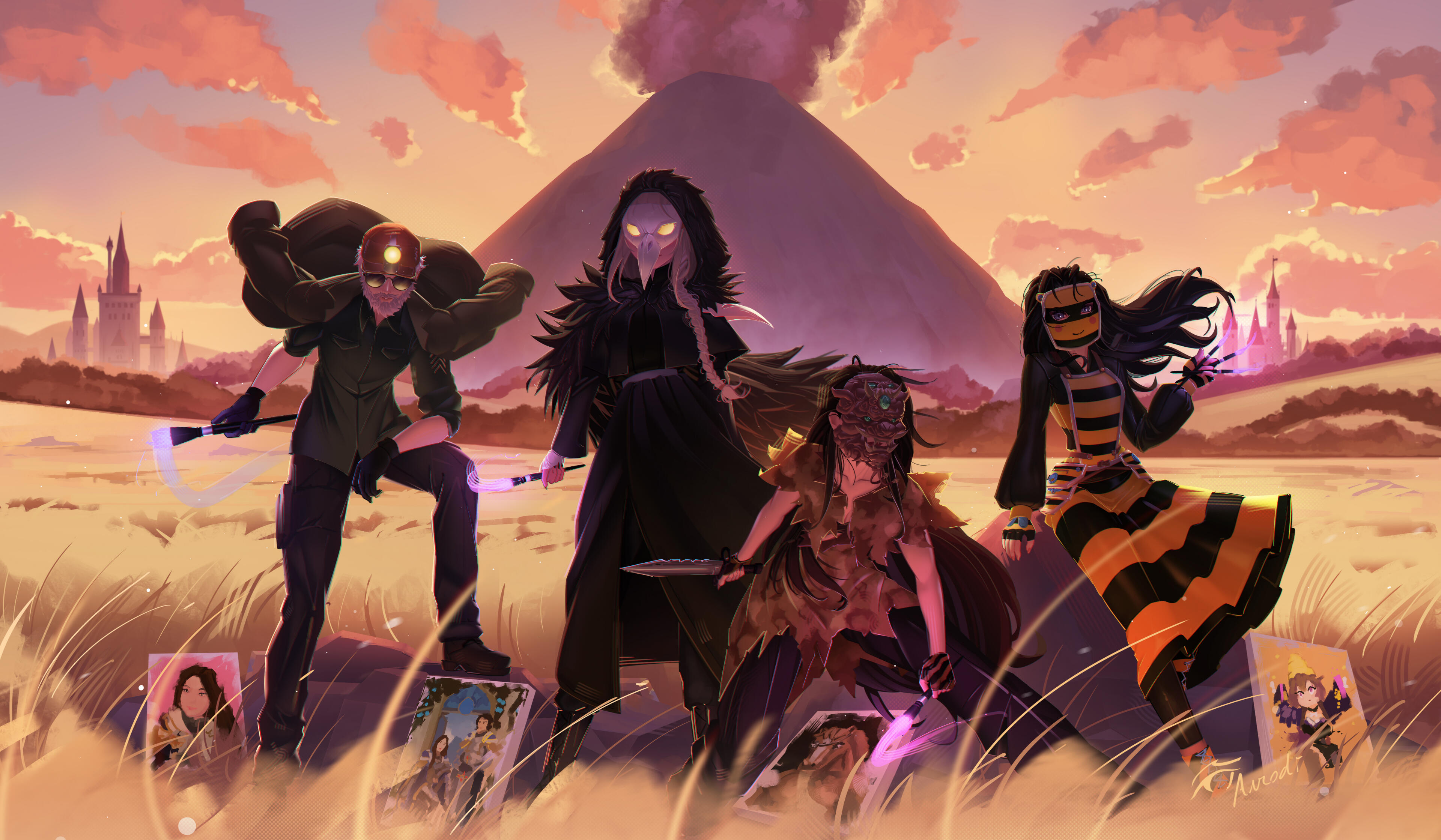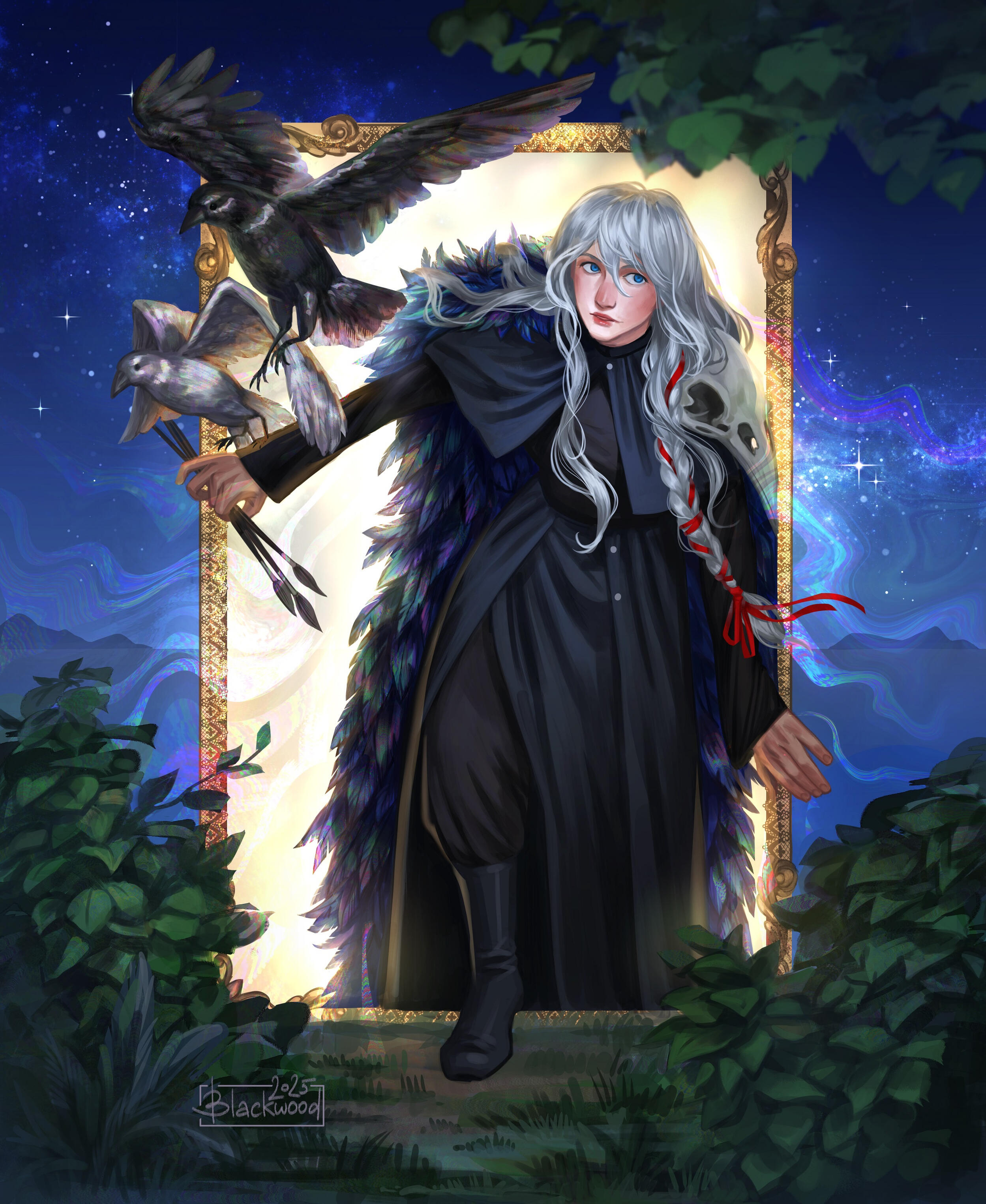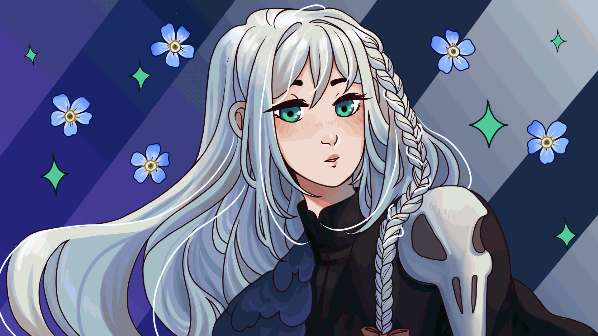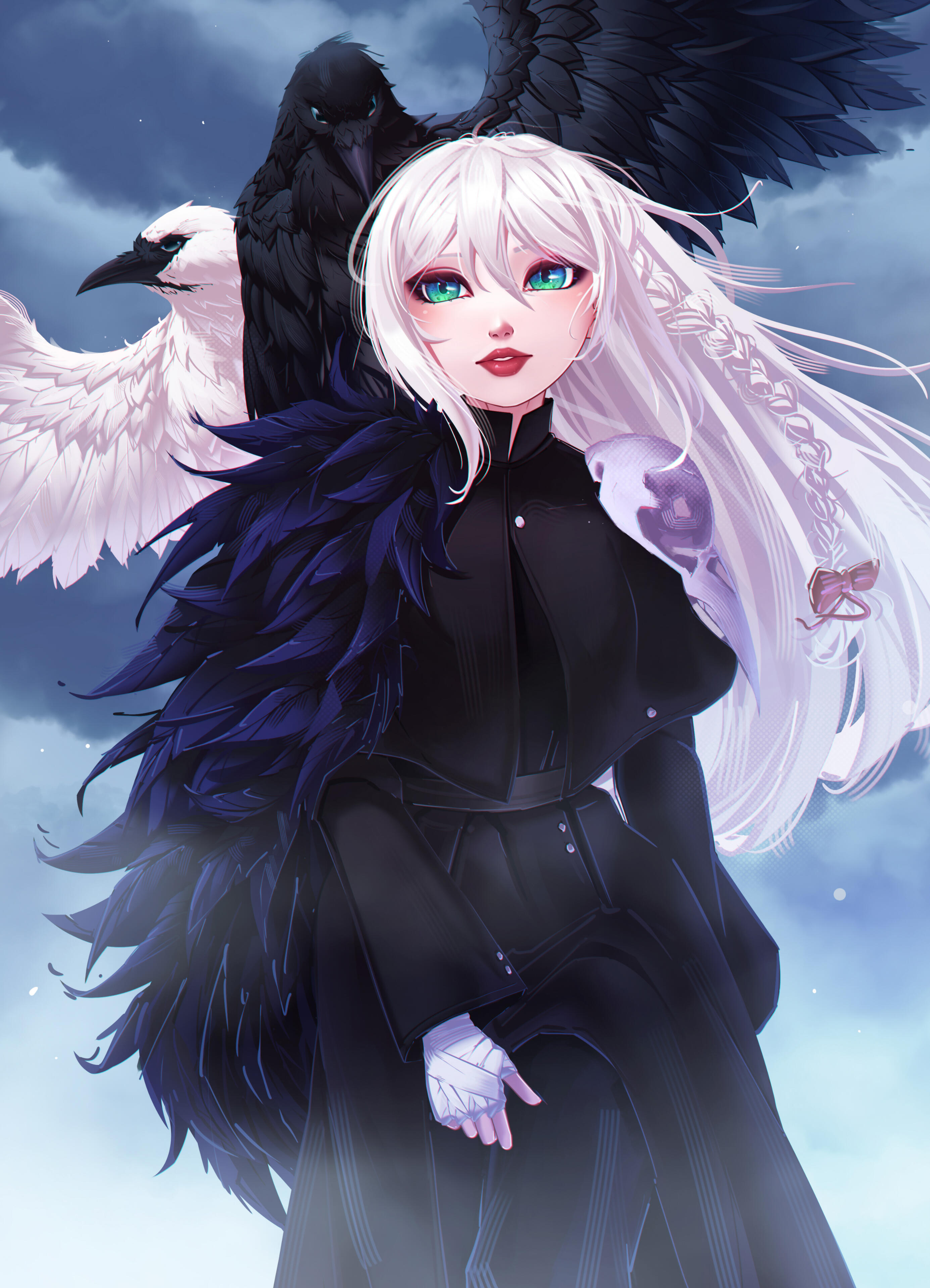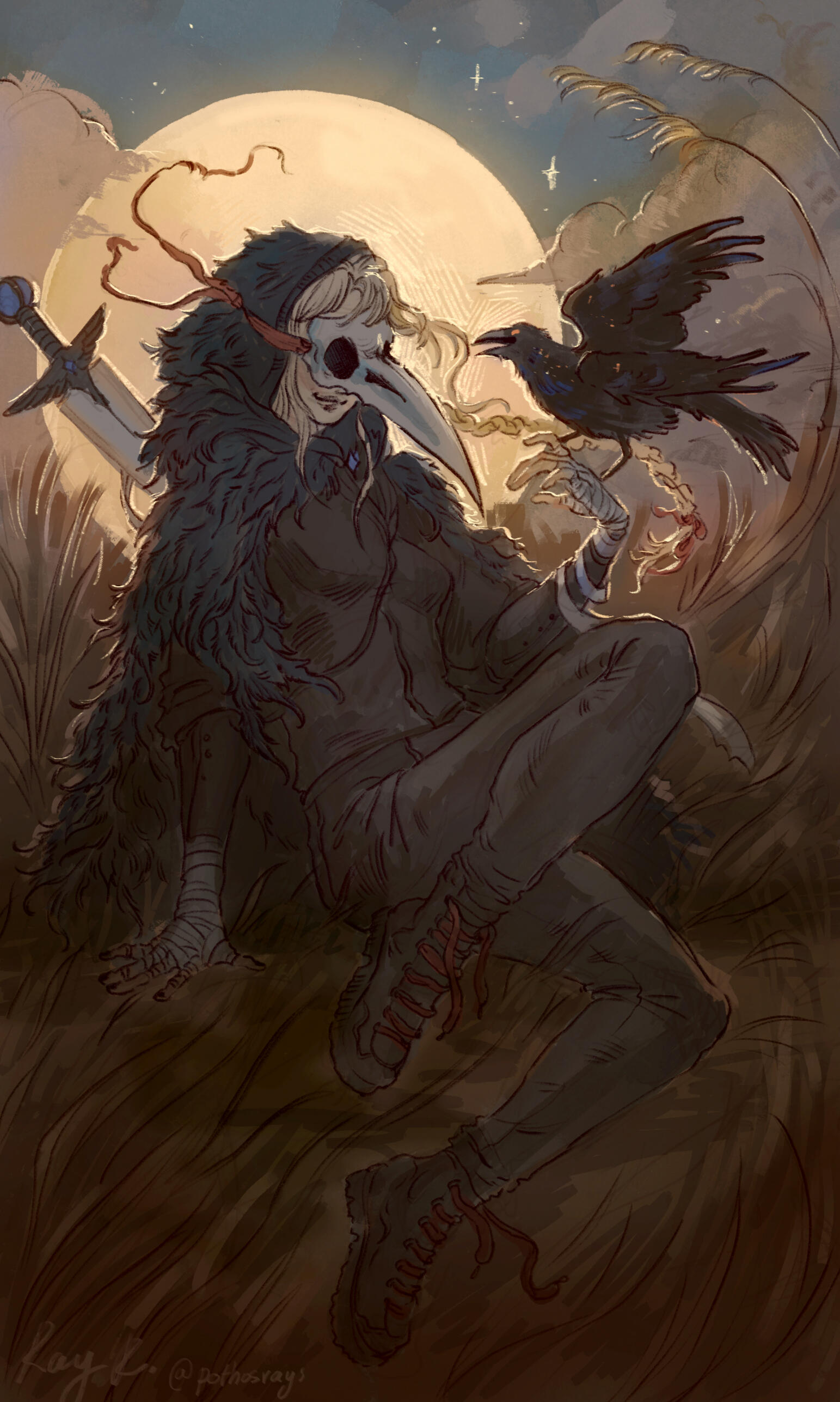 I'm open with any interpretation of my character as long as resemblance is there (same hair color, eye color - eyes have small dots - crow skull mask, and braid with red ribbon)